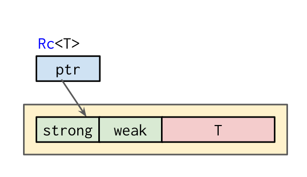 struct Node<T> { value: T, next: Option<Rc<Node<T>>>, }